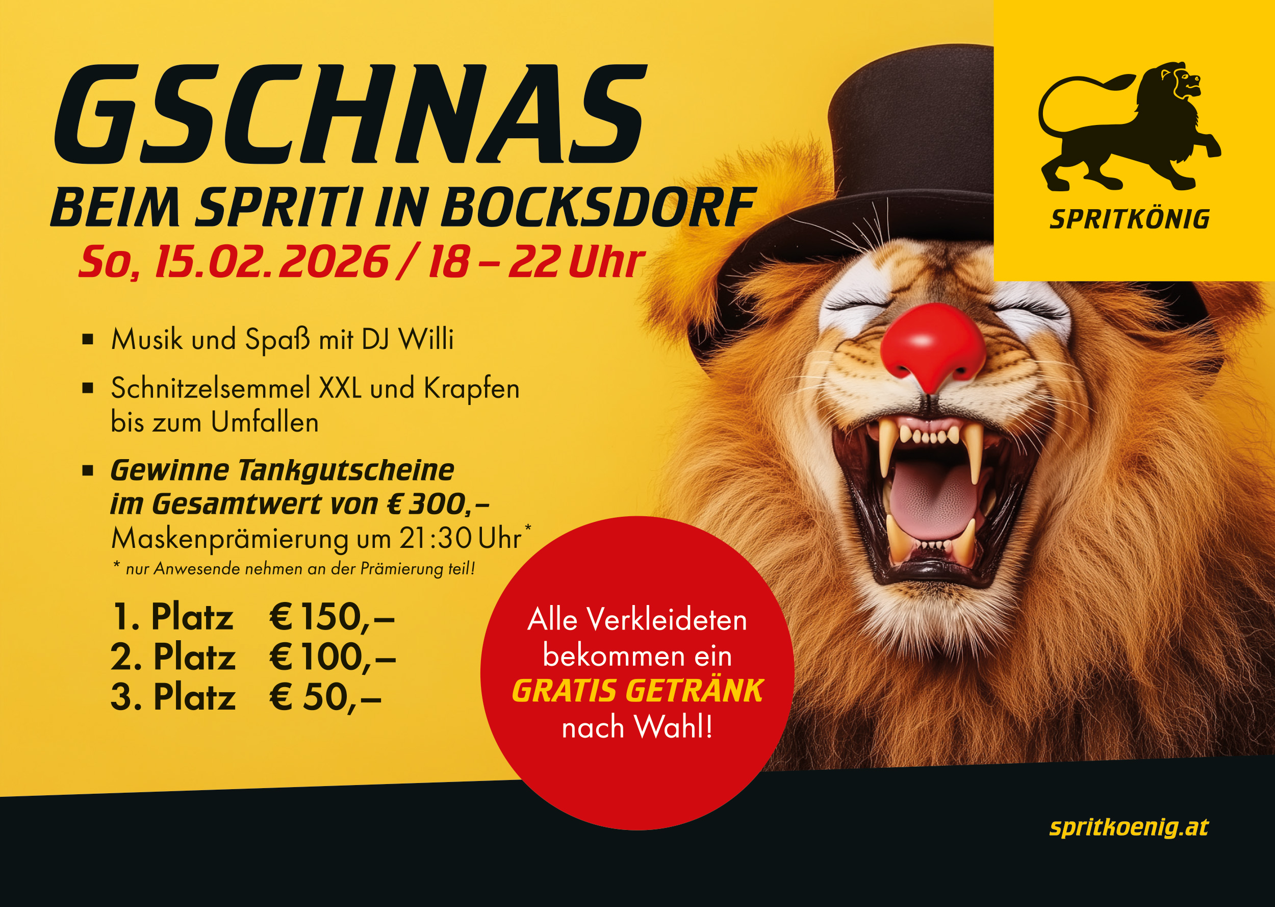 Feiert mit uns und erlebt einen Faschingsabend mit viel Schmäh, guter Musik und bester Laune – typisch Spritkönig.